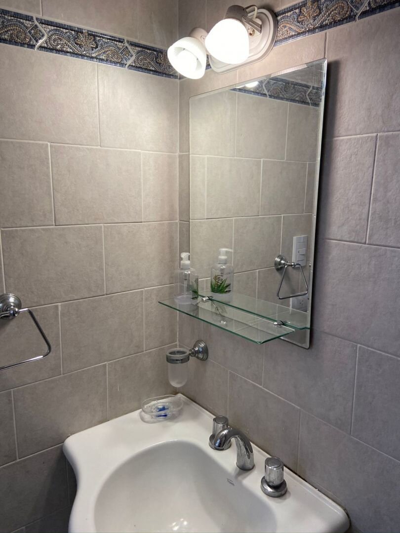 El baño es completo con ducha.