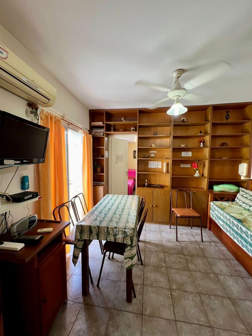 • Living-comedor: sillón cama con cama carrito, mesa para 4 y mueble biblioteca.